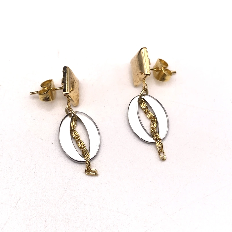 Boucles d’oreilles upcyclées pendantes mix or et argent. Boucles d’oreilles pour oreilles percées avec mélange de couleur argent et or. Boucles d’oreilles faciles à porter en toute occasion, elles sont à la fois avant-garde et discrètes. Bijou upcyclé.