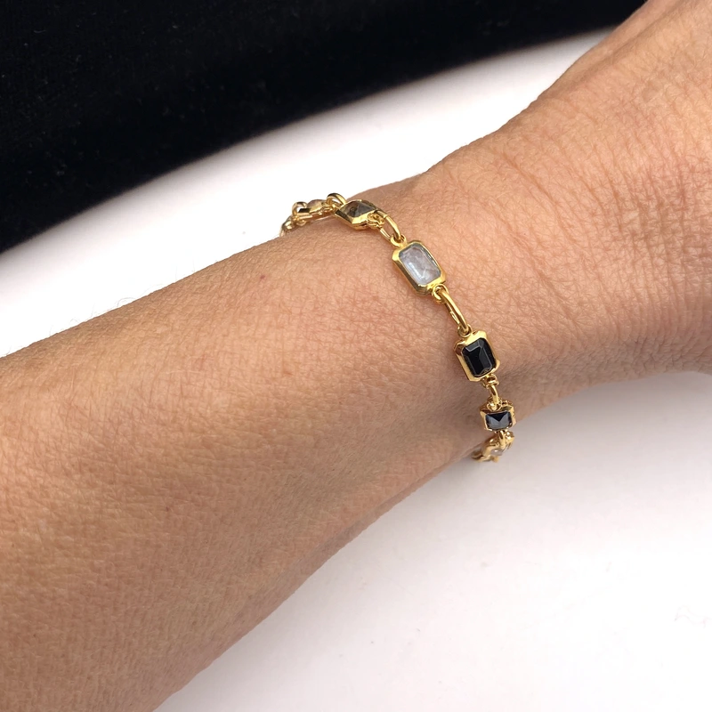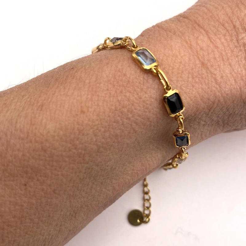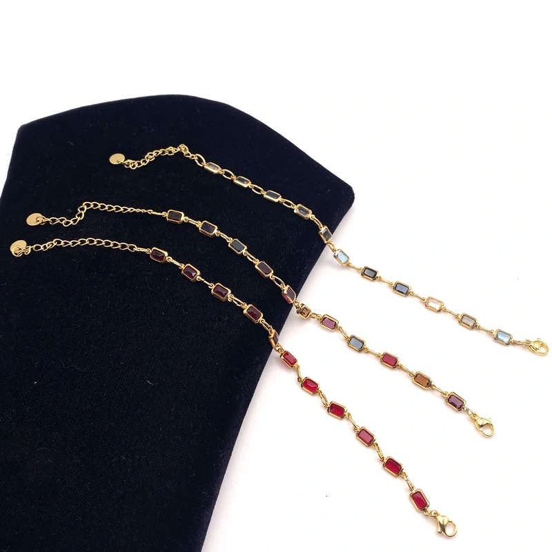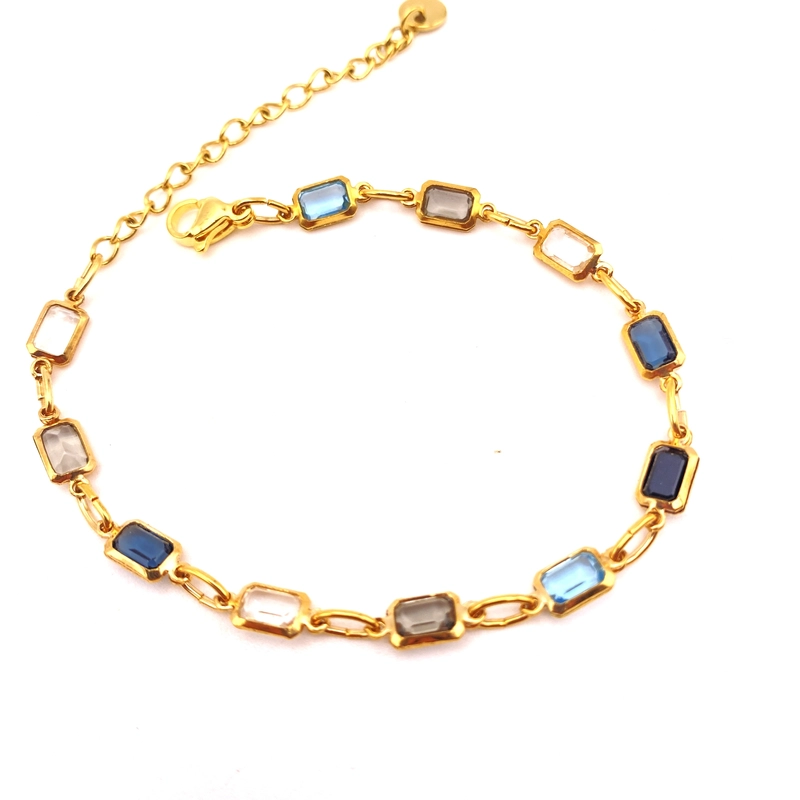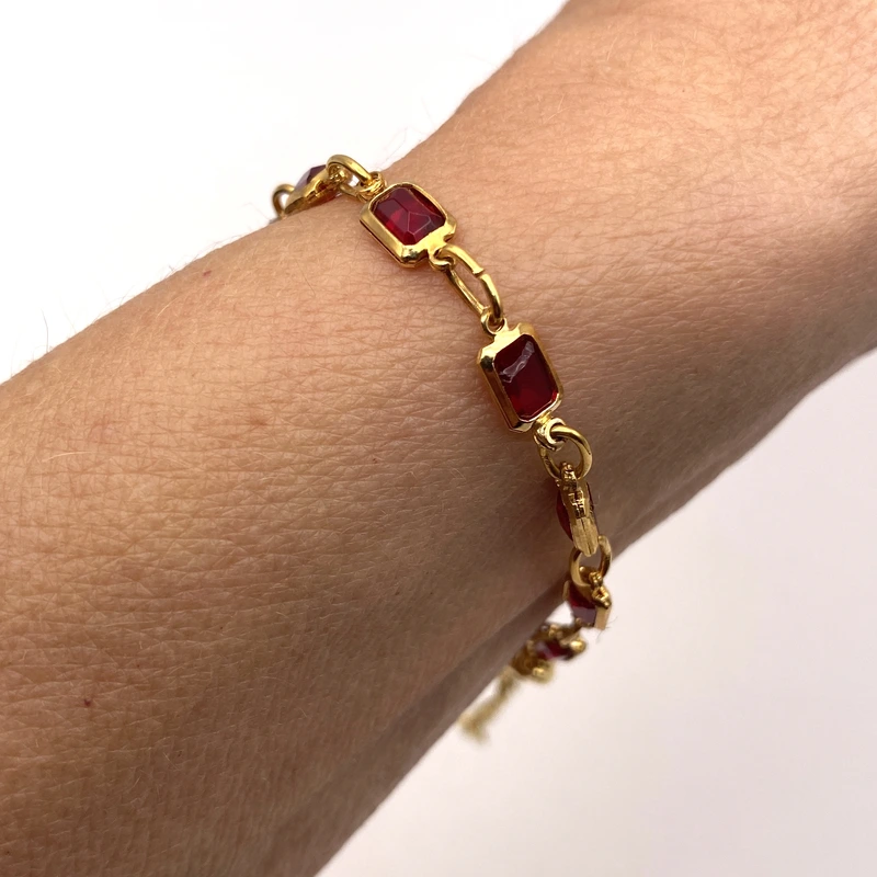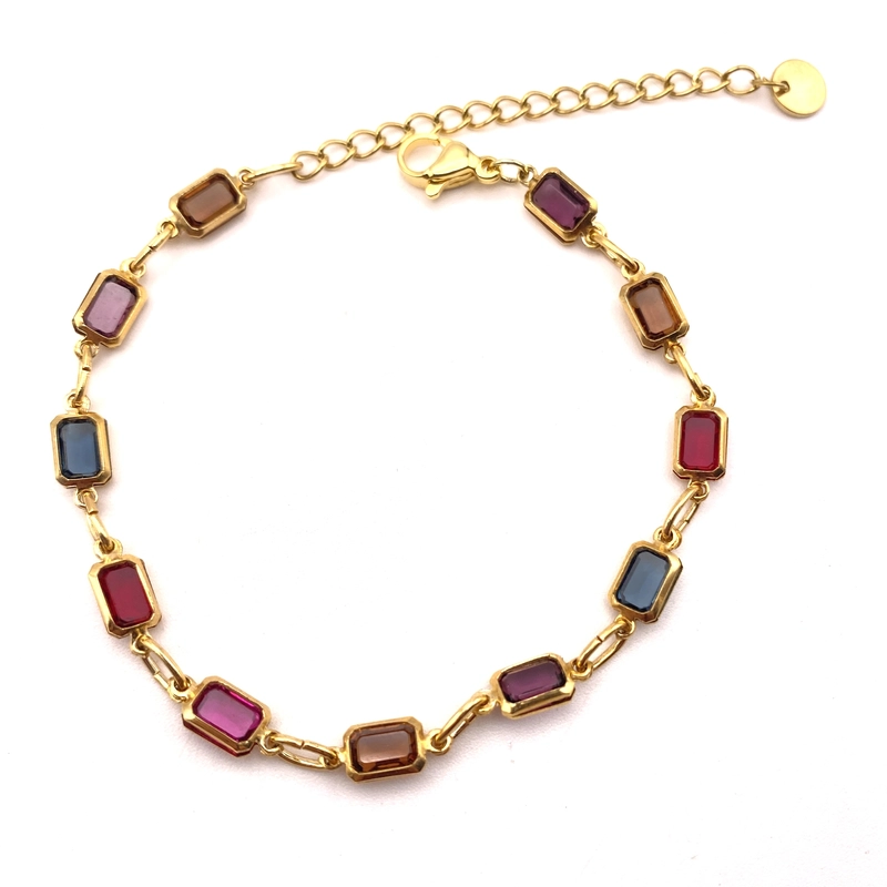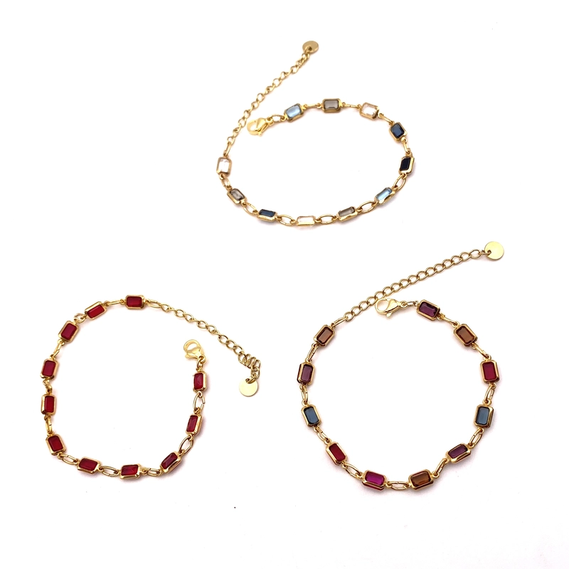 - Bracelet fin , léger et coloré en plaqué or et verre colorés.