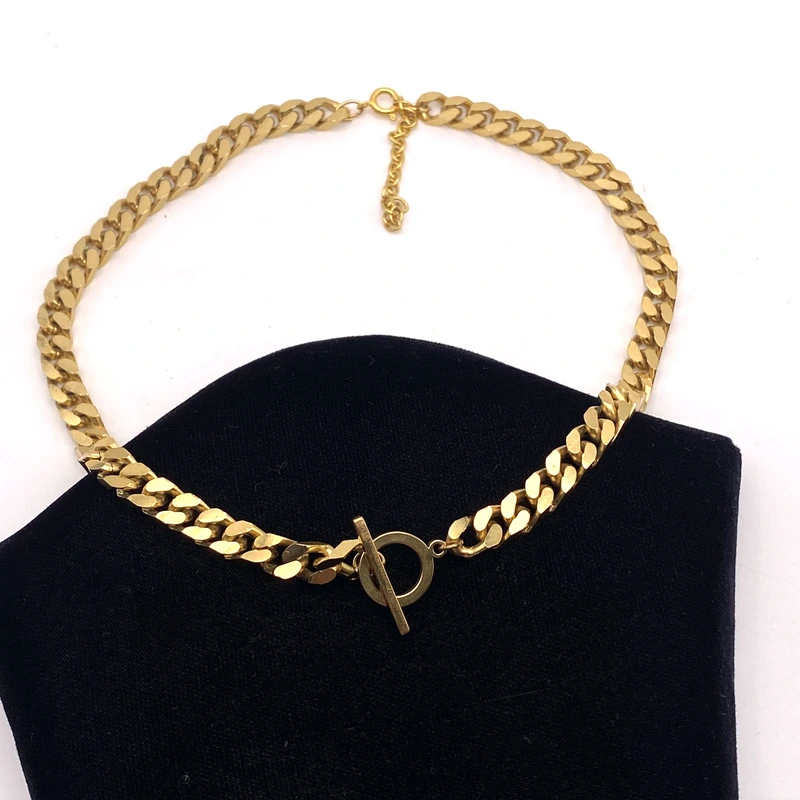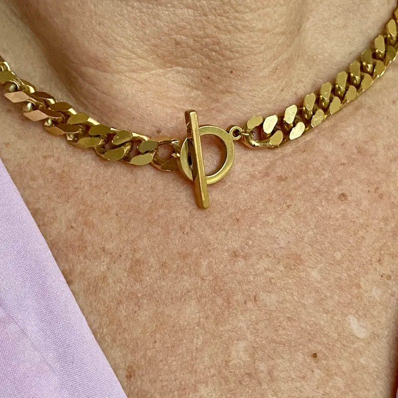 Chocker avec chaine gourmette plaqué or et fermoir T