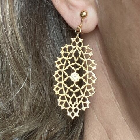 Boucles d’oreilles avec pendant filigrane, avec attache crochet d’oreilles ou clip.