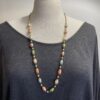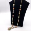 Collier Sautoir chaine et perles nacrées rose et vertes